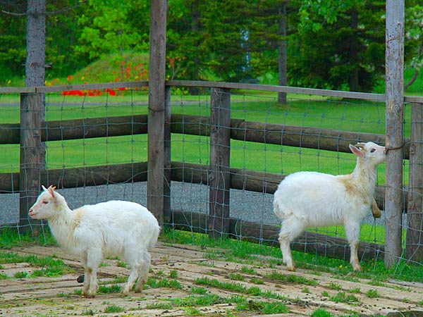 稚内駅からは車で約30分のふれあいランドには、身近な小動物や映画やテレビの『クイール』で主役を務めた、ラブラドルレトリバー犬2匹やテレビドラマ『仔犬のワルツ』に出演した仔犬たちなどお馴染みのスター犬たちが暮らすミニ動物園だが、犬たちは奥の別エリアに。古くは映画『南極物語』に出演したタロとジロが最後まで暮らした所として、敷地内にお墓があります。今の主役はヤギをはじめ、ウサギ、モルモット、ハムスター、アヒル、七面鳥などの小動物と人なつこいポニーといたメンバー。