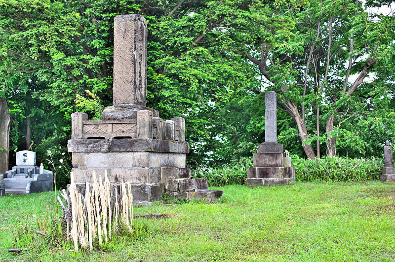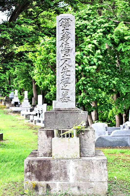 榎本武揚がロシアと交渉して明治8年(1875)に千島樺太交換条約を締結、樺太アイヌは国籍選択を迫られ樺太北部のアイヌは残留し、南部の108戸、841名が日本国籍を選択し宗谷に移住する。榎本はさらに樺太アイヌを農作業、もしくは空知の炭鉱夫として働かせるため対雁に再移住させる事を提案、開拓使は彼らの生活のため,石狩や厚田の鮭漁場や鰊場を設けたりしたが、樺太アイヌの視察団は不適と移住を拒否、アイヌ達から移住したくないという嘆願書を受けた大判官・松本十郎は対雁移住に反対し保護策を提案したが、アイヌとロシアとの接触を恐れた黒田清隆はこれを聞き入れず、翌年になって松本が出張で留守の時に、強権を発動し銃による威圧や脅迫でアイヌの人々を脅し船に乗せ、宗谷の一時居住地より対雁への移住を強行した。炭砿に送る計画は実行されなかったが、移住の結末ははさきに書いた通り悲惨なものでした。日露戦争後の明治39(1906)年までにほとんどが樺太に帰還したが、何人かはそのまま当地にとどまった方もいる。昭和6年8月に樺太旧土人先祖之碑を建立した津山仁蔵氏もその1人でした。同族・先祖の碑にあえて「旧土人」という言葉を刻んだ理由がとても気になった。◇建立年:昭和6年8月 ◇建立者:津山仁蔵 ◊所在地:江別市対雁115-80 江別市営墓地 ◇Gmap:マップコード
