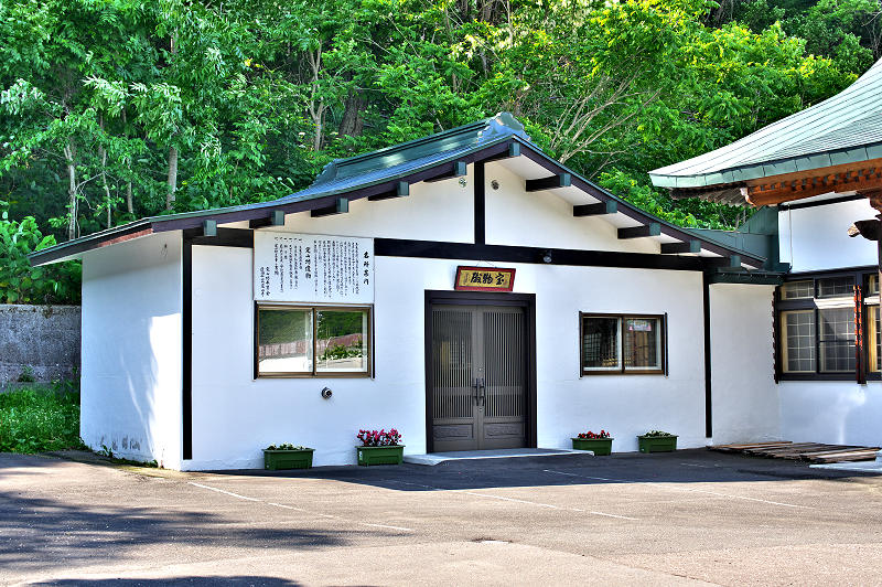 定山寺に隣接する美泉定山にまつわる貴重な品を収蔵・展示する宝物殿で「美泉定山和尚木像」をはじめ貴重な品を観覧できるという。主な所蔵物として・美泉定山和尚木像・守本尊弘法大師尊像(自作)・大田山大権現不動尊版木(自作)・獅子頭・法衣、安陀衣(定山坊着用)・定山坊真筆の書翰などがあるというが全てが見られると云う事ではなさそうです。◇所在地:札幌市南区定山渓温泉東3丁目 ◇Gmap:マップコード