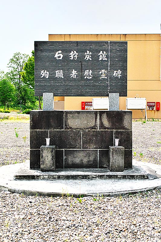 かつての炭鉱住宅街は新しい町営住宅に変わっているが、その一角(町営住宅NO5の近く)に石狩炭鉱殉職者慰霊碑がある。碑には「石狩炭鉱関係者 三井砂川鉱業所 奈井江町 これを建立する 昭和49年11月2日」と有るだけで、亡くなった方の名前もなく、建立経緯も理由も記されていません。石狩炭砿は昭和36年7月1日三井鉱山株式会社より鉱区の譲渡を受け、三井砂川鉱業所の第二会社として創業、順調に業績を伸ばしていたが昭和47年11月2日に起こったガス爆発事故は死者31名をだす。これが引き金となって昭和48年1月に閉山するに至った。事故の2年後に殉職者の慰霊のために建立された碑という。