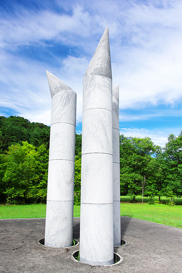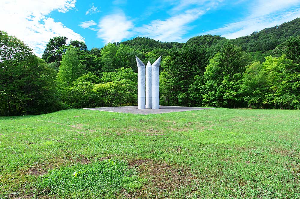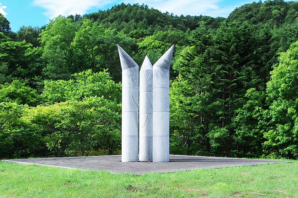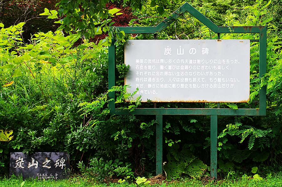 三菱美唄炭鉱は三菱鉱業が北海道開発の拠点とした炭鉱で美唄駅から美唄川を遡った一帯にあった。その一角にある我路ファミリー公園に安田侃が故郷、美唄の炭鉱で亡くなった人々の鎮魂と閉山によって炭鉱を離れた人々のために思いをこめて製作した炭山の碑。説明板より「美唄の炭砿は閉じ多くの坑夫達は散りじりに山を去った。石炭を掘り、働く喜びは盆踊りのにぎわいも楽しく、それぞれに忘れ得ない生活のなりわいがあった。時代は過ぎ去り、人々は役割も終えて、もう誰もいない。静かに地底に眠り歴史を語りかける炭砿(ヤマ)だけが、生きている。」美唄には強制連行でなくなった人々の慰霊碑はないが、炭山の碑は人種や国を問わず炭砿でなくなったすべての人達を慰霊する碑でもあった。