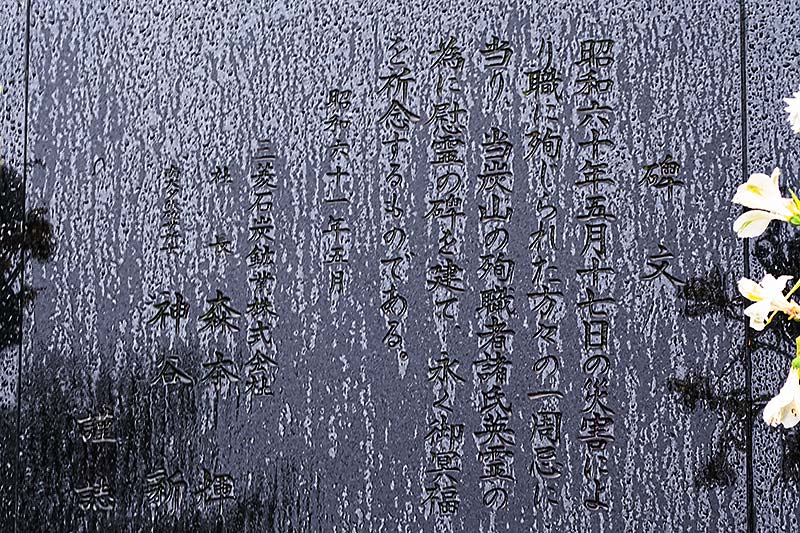 「本會社各炭礦及事業は今や共に拡張とたりと雖も顧みて採掘著手の當時を思へば實に人跡の曾て到らざる処に起業したるものにして當初以来従事者殊に労働に従事したる礦夫は如何に苦難を辞せず克き其の職務に努めたるかを想像するに余りありとす 本社たるもの豈に之を記憶せざるを得んや 本會社は曩に各炭礦に哀悼の碑を建て各炭礦採炭採掘開始以来事業に従事して職務上終に命を殞したるものの為に弔祭の典を行うこととし年々一度祭壇を設け霊牌を列ね以て法會を営むを恒例とせり