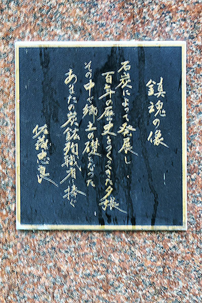 鎮魂の像は少年時代を雑貨商を営む母の実家のあった夕張で過ごした彫刻家・佐藤忠良(さとう ちゅうりょう 1912~2011)氏が、夕張のヤマで殉職した多くの霊を慰めたいと製作し夕張市に寄贈された作品。鎮魂の像は以前に夕張美術館前で見た様な記憶もあるが今は石炭博物館前に設置されている裸婦像で本体はブロンズ、台座を含めると高さは2.5mを超える。鎮魂の像台座に銅板がはめ込まれ「鎮魂の像 石炭によって発展し 百年の歴史をつくってきた夕張 その中で郷土の礎となった あまたの炭鉱殉職者に捧ぐ 佐藤忠良」裏面は同じく銅板に「昭和61年10月18日建立 夕張市 製作寄贈者 佐藤忠良」と刻まれ、犠牲者62人を出した三菱南大夕張炭鉱ガス爆発事故の翌年でした。