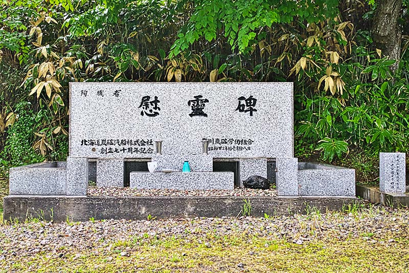 1905年から20年の間で大きな事故は1908年・新夕張炭鉱爆発事故・死者・行方不明者 91人 、1912年4月・北炭夕張炭鉱爆発事故・死者・行方不明者 276人、1912年12月・北炭夕張炭鉱爆発事故・死者・行方不明者 216人、1914年・新夕張炭鉱爆発事故・死者・行方不明者 423人、1914年・新夕張第二斜坑爆発事故・死者・行方不明者 49人、1920年・北炭夕張炭鉱北上坑爆発事故・死者・行方不明者 209人で死者・行方合計では1,400人に近い。特に夕張炭鉱北上坑で起こったガス爆発は、死者212名、負傷者7名を出す大惨事ですが、北炭は他の採炭切羽への爆発・誘発をおそれ一人の救出も行わず坑口を密閉する残酷な処理をした。石碑の左右には犠牲者212名の名前が刻まれ、建立者名簿を合わせると300人ちかい名前が刻まれているが、犠牲者のうち12名は女坑夫で同じ名字が連なっているのは一家全滅という悲劇を表すものかもしれない。北端には幌内炭砿で囚人砿夫を消耗品の様に扱ってきた歴史が有り、北炭という企業が砿夫をどのよう扱っていたのかが良くわかる。北上坑事故前の大正9年4月に全国坑夫組合支部の夕張連合が約2,000人で結成され、その直後に発生した事故で夕張連合は会社側に対して7項目の要求を掲げるとともに救援活動や遺族の見舞いを行い、北上坑大災害経過報告労働者大会を丁未小学校で開催。北炭との交渉で死亡者平均賠償額の3.3倍の慰謝料と死亡者全員の名前を刻んだ遭難慰霊碑の建立を認めさせた。