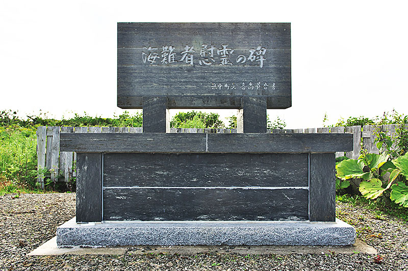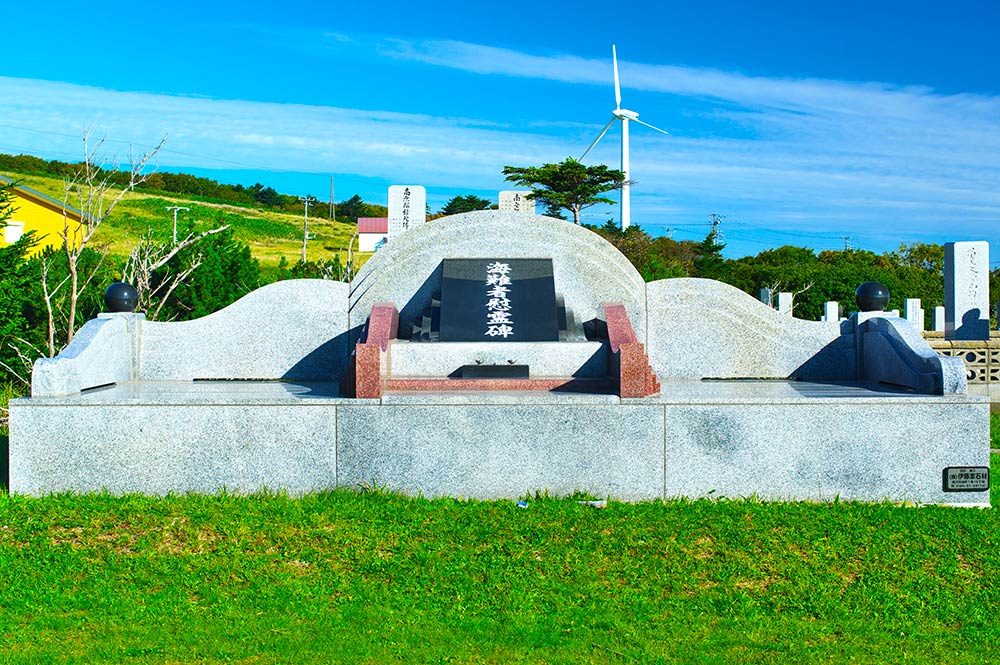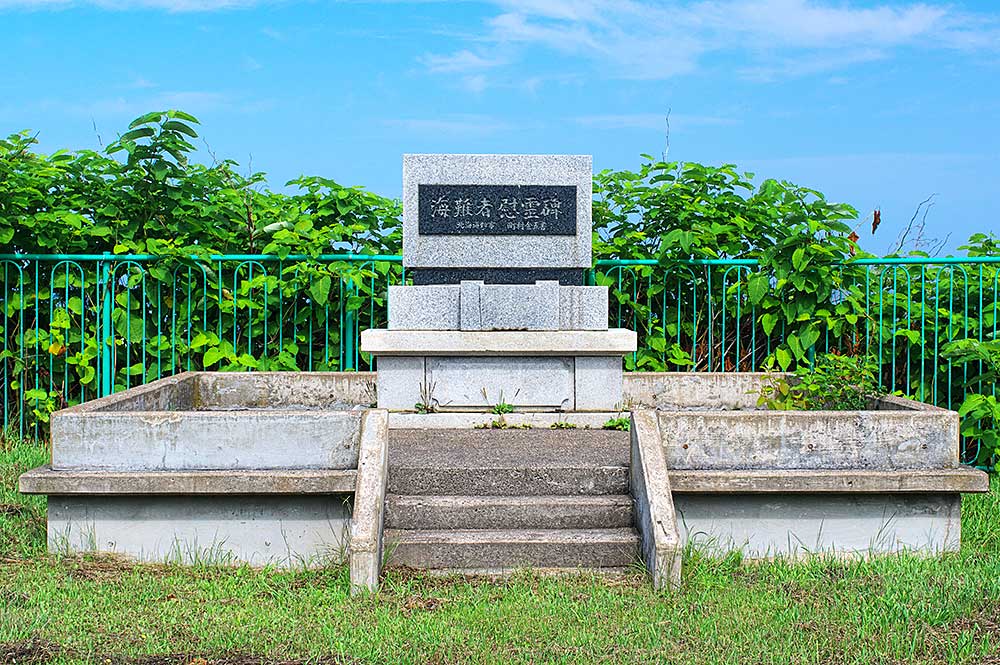 オホーツク海で犠牲になった人々の慰霊とその功績を後世に残すため水産関係者の努力で建立された。碑文より「明治開拓の往時より枝幸町の漁業開発のためオホーツクの荒波に身を託し幾多の辛酸を経て今日の漁業の発展のために努力されました。□□の中に不慮の難に遭い尊い犠牲となられた各位の霊に謹んでご冥福を申し上げます。私どもはかねてよりこれら先輩各位の偉大な功績とそのご苦労に対して心からなる畏敬の念おさしがたく永く後世に伝うべくこのたび慰霊碑を建立した次第であります。」※慰霊碑は高さ2m、横3m、幅2mの稲田花崗岩で明治開拓以来の海難殉職者131柱が祀られ、毎年8月11日に慰霊祭が催されている。碑建立後の平成19年5月に漁船の転覆があり1名がなくなっています。