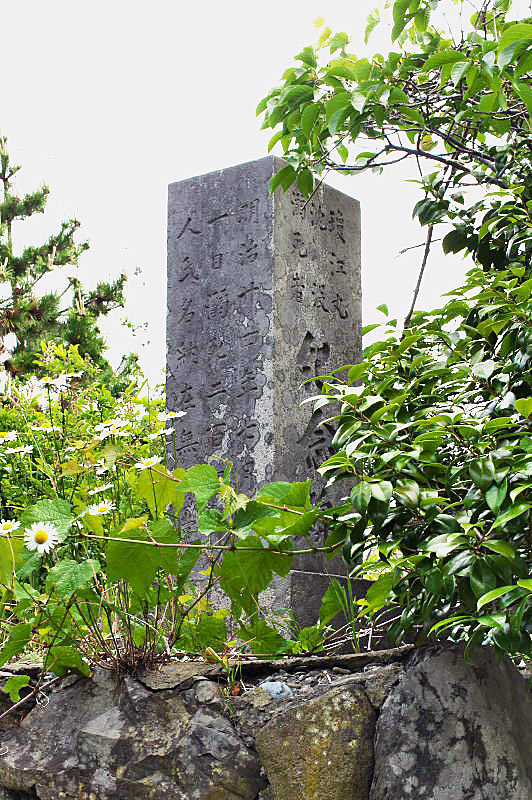 説明板より転載する「町指定文化財(平成3年11月26日指定)瓊江丸記念碑 瓊江丸は、松沢伊八が社長を務めていた北海汽船会社の船。明治二四年(1891)七月に、津軽海峡で三吉丸と衝突し沈没、乗客二五三人と船員八人が死亡した。松沢伊八は遺族への補償に努めたが、明治二六年(1893)に死亡、北海汽船会社も同年に閉社した。この碑は、事故により死亡した方々を供養するため、明治二七年(1894)年に建立された。平成二五年 江差町教育委員会」※この石碑は明治27年に松ノ岱に建立され昭和43年に正覚院本堂前境内に移設されたという。この碑とは別に松前町の光明寺に「瓊江丸 沈没 溺死者 記念碑」と刻まれた碑がある。側面には「明治廾四年七月十一日溺死二百四十人氏名納在無縁堂」とあり。それ以外部分は見えないため確認できず。