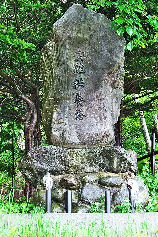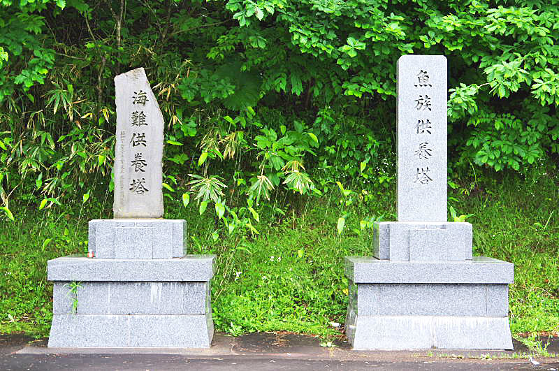 昭和43年8月建立の海難慰霊塔が鹿部公園に隣接するパーキングエリアの一角にある。海難に関する碑文は刻まれていないが昭和42年は北海道での海難事故が425件とあり鹿部でも海難事故があったのかもしれない。鹿部町の海難殉職者は大正年間から昭和44年まで判明しているだけで73名(戦没者は除く)というので、明治にまで遡れば100名は超えているものと思われる。海難供養塔と横並びに平成3年の建立の魚族供養塔がある。公園内の一角には珍しいミンクの供養塔があった。