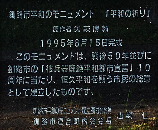 ◇建立年:平成7年8月15日 ◇建立者:釧路戦災記念碑建立期成会 ◇所在地:北海道釧路市栄町7丁目 栄町平和公園