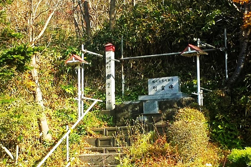 終戦間近の昭和20年7月14、15日の2日間、アメリカ太平洋艦隊第38機動部隊による室蘭空襲と艦砲射撃により多くの市民が犠牲になりました。御崎町会が艦砲射撃で亡くなった同町会の人を慰霊するために建立された艦砲射撃殉難者の慰霊碑です。戦後間もなく個人が建立した慰霊碑が始まりといい、昭和41年7月に御崎町会が建替え後に御崎神社境内に移転、老巧化などにより平成25年に再建、例年同神社の祭典と合わせて慰霊祭が行われています。