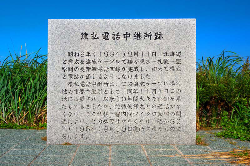 コムケ原生花園の碑に向かう途中、コムケ湖の北側沼尻近くに佇んでいる。台座正面の碑文「コムケ地蔵尊」横には大正14年から昭和29年までの間にコムケ湖でなくなった子供3名の氏名と没年(注・名前は省略)、施主 山田一太郎と刻まれています。この地蔵尊の背後は崖になって、下のコムケ湖は急に深くなり、藻が生えているため、子供達は足をとられ亡くなったという。そのため再び事故の起こらないようにと地蔵尊が建立されたと云う。かつて沼尻と海の間には距離が有り原生花園になり番屋もあったが、今は海蝕の進行で砂浜は後退し原生花園も海岸も狭くなって番屋もない。