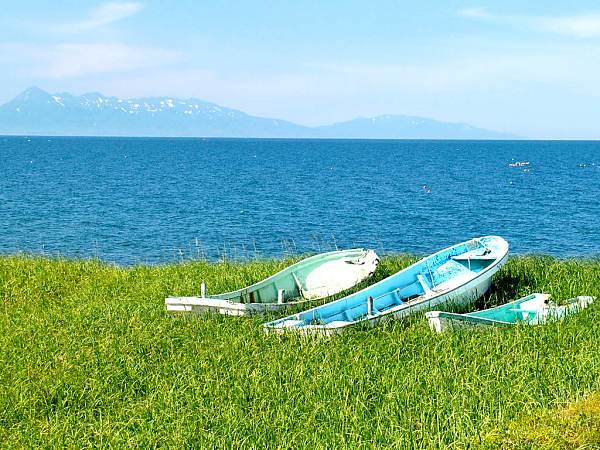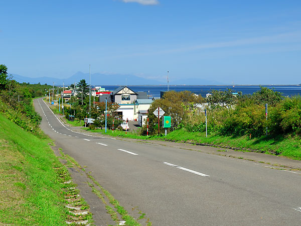 風蓮湖は根室湾に面した汽水湖で湖畔は湿地や原生林が広がり、動植物がバランス良く生息できる環境が整っていて、多くの水鳥や野鳥が飛来する。また特別天然記念物タンチョウの営巣地が各所にあり、岸辺に立ち込んで餌を採っている姿が見られ、10月下旬にはシベリアから大白鳥が飛来するバードウォッチングのスポットとして知られる。ルートは国道の西別川に架かる別海橋の南側から走古丹に向かう道道475号線「通称ハマナスロード」に進み左にオホーツク海を見ながら約6km程走った突き当りが走古丹。砂嘴の先端に向かうには、走古丹手前の分岐まで戻り左折すると、あとは砂嘴の先端まで続く一本道だ。分岐して1km程の間には干潟の発達した浅瀬が続いていて水鳥の採餌場になっている。舗装路は分岐から2km程でその先は防氷堤を兼ねたコンクリート道路に変わり、分岐から5km程にある番屋を過ぎると送電線もなくなり最果ての地という実感が伴う。防潮ブロックとコンクリート道路の行き止まりから少し歩くと風蓮湖の湖口となります。