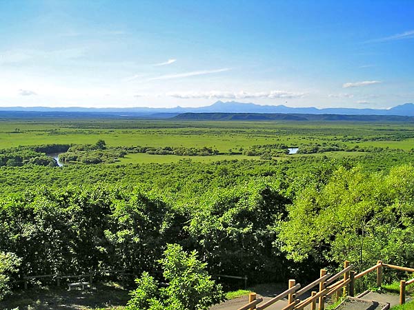 最初の駐車スペースが有る所に見落としそうな岩保木山入口の小さな看板があり歩いて岩保木山山頂にいける。標高があり釧路湿原の南東側から見る眺望はなかなかのものだ。駐車場に戻り更にいくつかのアップダウンを繰り返すと釧路川の岩保木水門が望める所に出る。道なりに更に少し進むと釧路川と遠くに釧路市が望めるスポットがあります。林道の分岐付近に盛土された所が有り、ここからの眺望は湿原の彼方に雄阿寒岳、雌阿寒岳を望める。眺望に優れた所を第一展望台~第三展望台と称してますが案内板は岩保木山頂上以外はなく、野生の感で探してください。