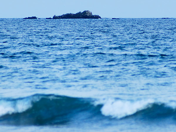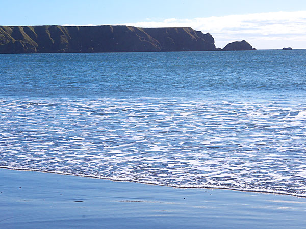 落石岬の付根にある集落から西側に出ると弓なりに砂浜が続いています。その先に落石岬の断崖が続き先端が海に落ち込んで、先に大岩が浮かぶ雄大な景色です。浜に出た所は外浜といい浜中町方面を三里浜と呼んでそれだけ長い砂浜が続いていると言う事です。砂浜はしまっていてオフロードタイプの車であれば問題なく走れる。二つ岩が見えている。