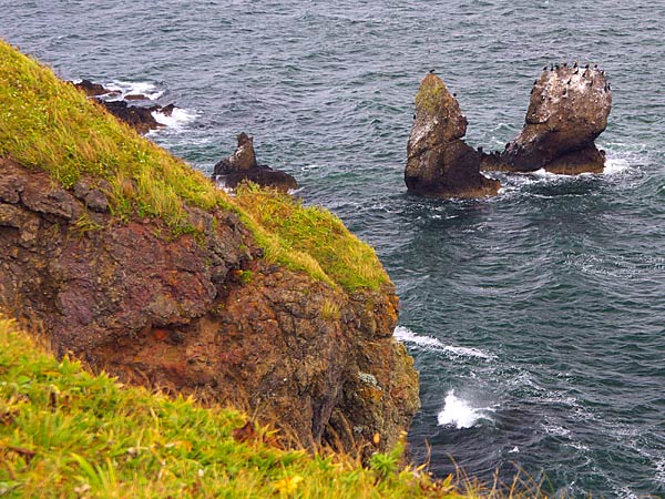 落石港へ行く途中の浜松海岸の沖合いに2つの島が見えます。ユルリ島(右側)とモユルリ島です。この島は工トピリカ、アザラシ、ラッコなどの海鳥、野生動物、海鳥繁殖地として北海道の天然記念物に指定され、一般の人は上陸できません。天然記念物指定の「エトピリカ」の「エト」は鼻「ピリカ」は美しいというアイヌ語をもつ貴重な鳥で、この2つの島が日本に生息する南端と言われている。またユルリ島は野生馬たちの楽園だ。夏場に漁業者が島へ渡り、コンブ漁をしていた頃に馬たちはコンブ運びに使われた作業馬の子孫で、周囲8kmに満たない小島で20頭あまりが自由に暮らしている。より近くで見たい方は落石ネイチャークルーズを利用しましょう。双眼鏡は必須アイテム。