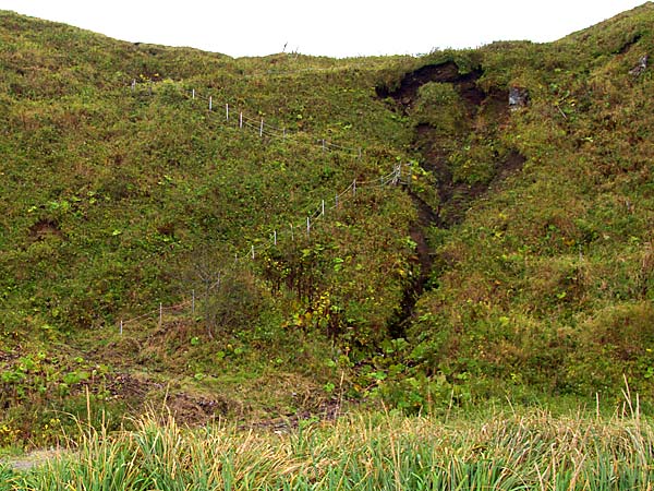 根室半島はチャシが集中している場所で約30のチャシが確認され、そのうち24ヵ所が国の史跡となっている。その史跡に指定されたチャシをまとめて根室半島チャシ群と呼んでいるがチャシは16世紀から18世紀にかけて造営されたもの。一番アクセスの容易なオンネモトチャシは根室市街から道道35号線(オホーツク海側)を納沙布岬へ向って車で約20分。温根元小学校を過ぎて旧道に入り少し行くと左手にチャシ案内の標柱があり左折しオンネモトチャシ跡と書かれた黒い物置前に駐車して徒歩5分程で到着。遊歩道の草刈りはしてあるとは思うが確実性は・・伸び放題の時は港側から直接登った方が良いかも。チャシの上からは絶景だがチャシの形は港から見た方が全体の構造が分かりやすい。草の伸びる前、春先がお勧めです。納沙布岬はここから2.5km程。移動にはレンタカーが便利です。