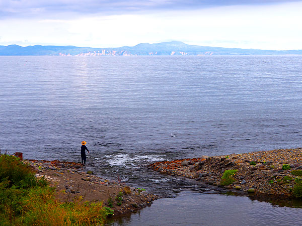 カモイウンベ川から岬よりに更に500mほど進むとクズレハマ川につく。渓相はカモイウンベ川を小さくしたような川だが荒さはこちらの方が上で河口から600mほどの遡航で高さ10mほどの魚止めの滝。山岳渓流がそのまま海まで続くような知床の河川が多く、釣りのできる区間は短いが秘境知床で釣りをしている実感がある。海岸を歩く時間の方が遙かに長いが。