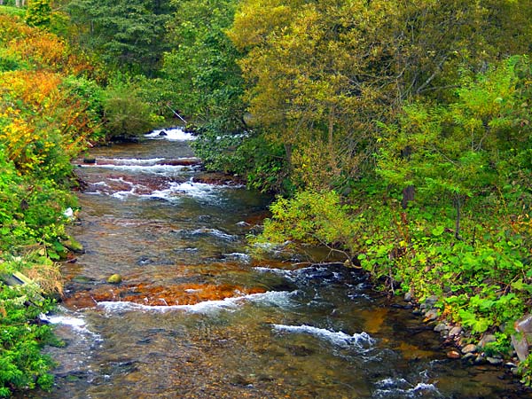 熊超の滝のある支流や登山川も釣り場だが最近は魚影も少ない。登山道脇の小さな沢で、オショロコマが対象。川幅2m程の沢なので渇水期の釣りは難しいが気楽に釣りが出来るので取り上げてみたが、釣りの結果は保証出来ません。遡行していくと5m程の滝が有り此所までが釣場になっています。キャンプのついでに行くのが良いかも。