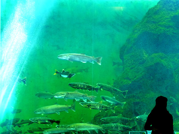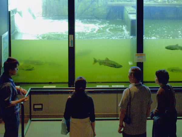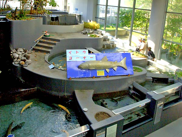 標津サーモンパークは、秋鮭水揚げ日本一の標津町を象徴する施設で、世界中のサケ科魚類や標津沿岸の魚を展示した水族館と、サケの博物館の機能を併せ持つ。また、高さ36mの展望室からは知床連山、標津川、国後島などが一望できます。サケの遡上シーズン以外は一般の水族館と同じようですが、サケの遡上期は大小7つの魚道水槽を遡上していくサケの姿を眺められる魚道観察所が圧巻で、サケの遡上シーズンには是非訪れてみてください。専門の学芸員がサケの生態について説明してくれますので判らない事は何でも聞いてみましょう。もう一つは巨大な水槽を遊泳するサケやカラヲトマスなど多様なサケ科魚類を見ることが出来ます。これもスケールが大きくて圧観です。近海で生息する魚や淡水魚が飼育されている小水槽もありそちらも見逃せませんね。白いイトウも仲間入りしていました。園内のサーモンハウスある売店には羅臼産のヒグマとトドの缶詰など珍しい物や、標津産の魚介類や加工品を並べた売店と、レストランがあります。遊歩道を歩いて標津川の鮭捕獲場にいくと遡上してくる鮭の姿を見ることが出来ます。◇開館期間2月1日~11月30日 開館時間09~17:00◇休館日2月~4月・11月は水曜日休館(5月~10月無休)◇標津サーモン科学館 TEL:01538-2-1141