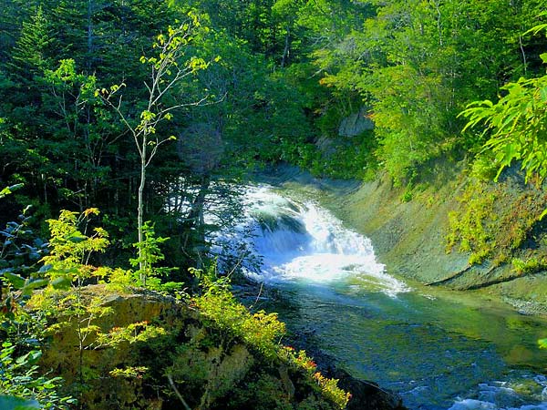 知床半島の東側は標津町と羅臼町に分かれるが、大きい河川は標津側に多いが滝の情報は少ない、此処では知っているの滝情報を整理してみた。釣り人情報という事で高さや規模は曖昧な所も有るがご容赦を。標津の滝は大半は忠類川になってしまうが規模の大きい滝は無い様です。他にライダーに人気があるという滝ノ沢林道・湯の橋上に有る川岸の露天岩風呂の「薫別温泉」上流の左支流にかかる滝、少し進んで右側から落ちる滝、更に進んで本流の滝など、滝だけの目的で入ると物足りないが、温泉・釣りとセットなら十分楽しめます。ただ川床が異常に滑りやすく危険な所ですが、知床のオショロコマにはあえます。