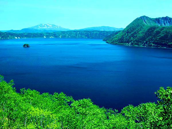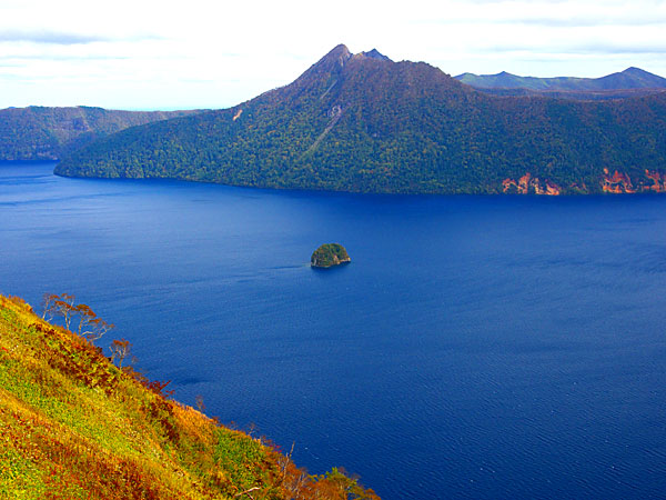 阿寒申立公園のはほ中央に位置する屈斜路湖は阿寒3大カルデラ湖にして九州の阿蘇カルデラをしのぐ日本最大の屈斜路カルデラのなかに横たわり、道内ではサ□マ湖に次いで2位、日本7位の周囲57km面積5.7ha、最深117.5mで独特のコバルトブルーの美しい水の色が魅力のカルデラ湖。ほぼ中央に周囲12km、面積5.7haの円錐形火山、淡水湖内では日本最大の中島が静かな湖面にたたずんでいる。湖岸に原生林の深緑が自然豊かな景観を映しているが阿寒国立公園内では、明るくおおらかなリゾート地で、キャンプやヨット、ウィンドサーフィン、フィッシングなどや温泉浴で賑わう。湖岸の砂場と和琴半島には露天風呂があり、池の湯、和琴、仁伏など静かな温泉宿が湖畔に点在します。砂湯はドライブで気軽に湖面に触れることが出来る唯一の場所。冬は湖岸が開けているので白鳥が越冬しています。湖を望む3つの峠に立ち、眼下に広がる雄大な原生林に囲まれた湖を見下ろした時、あまりのスケールに、思わず声を上げたくなるかも。冬期間は全面凍結しますが、地熱が高く解氷部分が出来る事から、毎年400~500羽の白鳥が越冬。魚は昭和13年の湖底地震で硫黄が噴出したため壊滅状態となったが最近は復活。