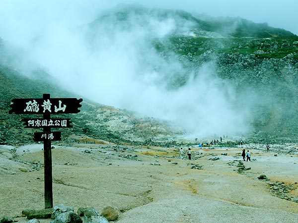弟子屈町川湯にある硫黄の混じった蒸気を大量に噴き出している山で川湯三山のひとつ。活火山である硫黄山は知床半島の硫黄山と区別するため川湯硫黄山とも呼ばれる。硫黄山は別名をアトサヌプリと云い跡佐登(あとさのぼり)と字を当てている。川湯付近の平野部は跡佐登原野と呼ばれる。アトゥサ・ヌプリ atusa-nupuri⇒裸の山”という意味だが、確かに噴気孔近くは硫黄のため木が一本もないが山全体が裸の山という訳ではない。