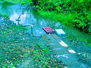 丹頂の家近くの八重九太郎氏が所有管理している湧水。釧路湿原際の水場には二本のパイプから地下水が自噴し、パイプからあふれ出た水がせせらぎを作っていた。水は釧路保健所のお墨付きとの事で安心して飲める水という。鮭鱒孵化場への道に入りすぐ左折すると突き当たりにあります。