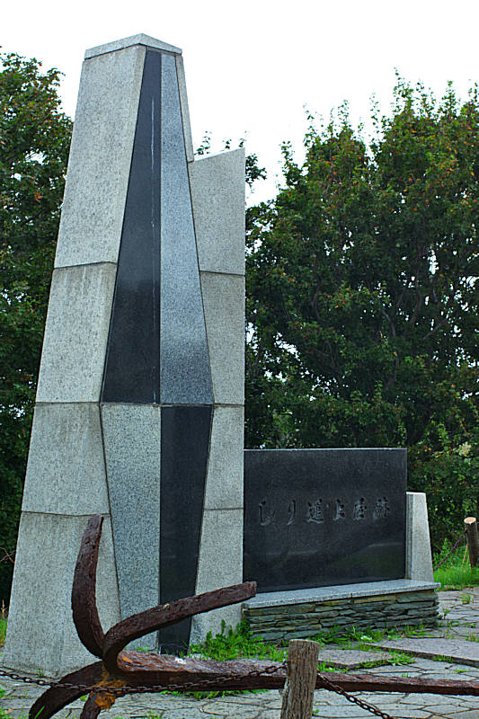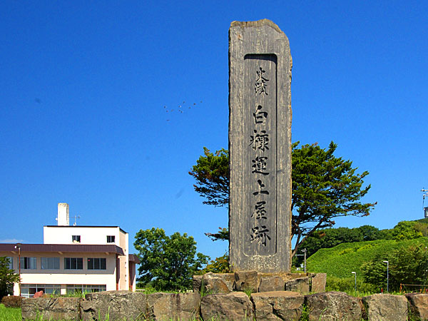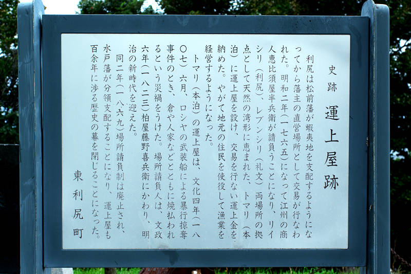 運上屋跡は利尻町の観光地の一つで鴛泊港から西に車で5分程の本泊地区にあり、写真の後方側に復元された石段がある。古くは北海道各地のアイヌの人達が松前や各地に行って自由に交易をしていたが、松前藩が成立し力をつけるとアイヌの自由な交易は制限され、決められた場所に家臣が赴いて交易する商場知行制となる。その商場知行制も藩の放漫経営などの執政などで、18世紀以降になると商場経営を民間(商人)丸投げして運上金(税金)を納めさせる場所請負制度に変わっていった。請負場所の拠点施設を運上屋と云い、支配人(現地責任者)、通辞(アイヌ語通訳)、帳役(書記)、番人(アイヌ使役の監督)、他に和人の稼方がおかれ場所請負人が現地で統括するのは例外的でした。利尻での商場が開設された時期は不明だが、天塩商場が寛永11(1634)年の開設とされ利尻もその頃には商場が開設されていたのかもしれない。利尻場所最初の請負人は明和2(1765)年の恵比須屋岡田弥三右エ門で、文化4(1807)年より岡田源兵衛、天明4(1784)年から恵比須屋岡田治助だったようです。文政6(1823)年に利尻場所(礼文島を含む)が恵比須屋より柏屋(藤野)喜兵衛に譲渡され、利尻島請負を罷免された明治2(1869)年まで柏屋(藤野)の独占場所でした。漁場経営の拠点として今の場所に運上屋が置かれたのは1823年頃のようですが、運上屋は5間半×13間程だったと云い、運上屋跡は利尻町の指定文化財となっている。運上屋の規模としては普通ですが、離島の運上屋として見るなら大きな施設でしょう。蝦夷地が幕府直轄となってから駅逓業務も場所請負人の義務とされ、役人などに利用された。宿泊施設は運上屋や番屋に併設されたり通行屋として別棟の事もある。明治になって場所請負制は廃止となるが、漁場持ちと名を変え明治9年頃まで温存(分領支配は2年間で終わる)されたが、開拓使事業報告によると漁場持ちが駅逓を取り扱うとなっているが、人馬継立はなく漁場持ち廃止後は航海船取扱所を置くというのが島らしい。利尻駅逓所としての取扱人には松林喜兵衛、松浦逸八郎、綱島定助の名前が有り藤野の関係者だったとおもわれる。明治18年に鬼脇に移転している。◇所在地:尻富士町鴛泊字本泊
