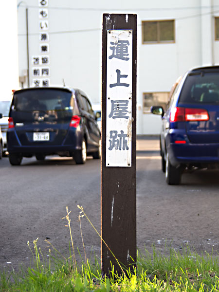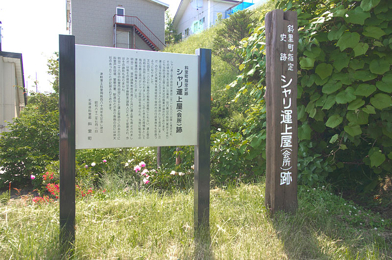「海辺の宿・運上屋」の角地に「しゃこたん場所運上屋・出張所跡」の史跡標柱がある。この宿は積丹場所請負人だった岩田金蔵がニシン漁が衰退した後に運上家の脇本陣(通行屋か?)として建てられた施設を利用し旅館業をはじめたのが元というので、脇本陣という呼称から駅逓と考えるのは自然な成り行きだがだが建物は世帯交代して現存していない。場所請負制度が明治2年に廃止され、運上屋の役割も大きく変わり、役所の出張所、宿泊施設、運送などが主体になり、名称も運上屋(元)は本陣、それに変わる施設(江戸期の通行屋、止宿場、番屋など)は脇本陣となる。この名称は2年間だけで、その後の紆余曲折を経て最終的に駅逓所となる。松浦武四郎の蝦夷日誌2編と竹四郎廻浦日誌にも記載され、安政3年にはこの地を通過。その時に見た番屋、おかむいなど、当地の様子を記している。また地名にある「シシャモラエキシ-来岸」というのが何となく気になる。◇所在地:積丹町来岸町42 ◇N43°19’49.85” E140°23’41.26”