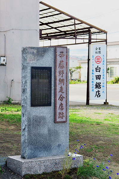 藤野家はかつて柏屋と称し屋号は「又十」で「またじゅう」と呼ばれた藤野網走分店跡の史跡標柱が白田鋸店の駐車場の端にあり、この場所に又十藤野網走分店がありました。天明2(1782)年に飛騨屋久兵衛が宗谷・斜里場所を請負したが最初のようですが、寛政の乱で飛騨屋が罷免され、シャリ場所を村山伝兵衛の請負にした寛政2(1790)年が実質的な斜里場所の開設とされているようです。のちに初代藤野喜兵衛が網走に番屋を設置、網走で和人が漁業をはじめた最初の根拠地だった。又十藤野は文久2(1862)年に会津藩より斜里場所請負人を罷免されるが、網走場所は直轄領として残されたので斜里場所請負人罷免後は網走番屋が又十藤野の拠点となり、内陸の交通網が整い始めた安政5年から本格的に駅務も取扱うようになったようだ。網走藤野番屋は平屋で、間口28間、奥行8間5尺、248坪(818㎡)と云い、幕末から明治の頃には戸長事務所、郵便取扱所、駅逓などがあった。明治6(1873)年に漁場持として斜里も復活するが、明治9(1876)年に漁場持が廃止され、又十藤野は一漁業経営者となるも漁業不振で農場経営などへの進出を図ったが、思うような成果を上げられずに大正期に撤退。安政5年に開設した駅逓は明治5年に藤野番屋から網走駅逓として独立、中央道路(囚人道路)開削が始まる頃に中央道路起点付近に移設されていたようだがが民営の期間が長く詳細が良くわからないようです。◇所在地:網走市南4東6(旧・北見町中通一丁目) ◇N44°01’18.01” E144°16’36.49”