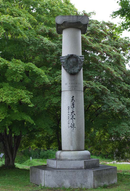 説明板より転載 「宿舎の役目を持つ本陣は、明治5年に竣工し建築面積800㎡の木造平屋建ての当時としては最大の建物であった。8年からは主にお雇い外国人用として使われ土木工学技師ホイラーなども居住していたが12年に焼失した。クラーク博士は終始この本陣に居住し、ここから農学校の開校式に臨み又、建築間もない札幌の様々な施設などを視察している。明治10年4月16日、クラーク博士は本陣前で馬上の人となり札幌に別れを告げ帰国した。」◇所在地:札幌市中央区南2条東1丁目 創成川河畔 住友生命札幌中央ビル前