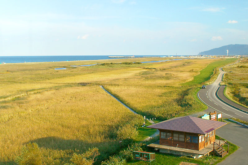 サロベツ原野から道道444号を日本海に向かい、道道106号(稚内天塩線)を稚内方面に右折、約200mの直進で「砂丘のえき」があり、その駐車場海側に以前は止宿所跡説明板があったが倒壊撤去され再建の話もない。稚咲内は稚内と天塩の中継地で、旅人の休息と給水の地として1840年代に止宿所が設けられ井戸も掘られたが、それ以前は水を天塩より馬で運んだと云う。明治以降も止宿場は継続されていた様で、幌延町史年表には明治3年官設宿泊所設置とあり「北海道宿駅制の研究」では明治32年に止宿所が官設稚咲内駅逓所に昇格したとされ、明治20年代初頭の北海道全図には稚咲内に駅逓マークがあったが、明治15年の駅逓取扱人名簿に稚咲内はなく当時の経営実態は不明な事は多いようです。実際に止宿所が有ったのは説明板が設置してあった砂丘の丘より2kmほど北上したツツミ川に架かる長沼橋(地元では富士見橋と呼んでいるらしい)より約200mほど北にある浅い窪地が稚咲内駅逓所跡と聞いたが、草地改良と水路改修などで痕跡はわからなくなってしまった。明治初期の駅逓は漁場持ちによって維持されていたのは宗谷と同じようです。