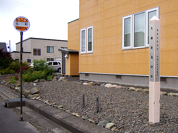◇開駅年:明治44年12月28日 ◇廃駅年:大正15年7月31日 ◇取扱人:赤松滝太郎 ◇記念碑:幌延町史跡標柱 ◇建立年:平成10年6月建立 ◇建立者:北海道幌延町 ◇所在地:幌延町元町27-3 大曲バス停横 ◇Map:45.011775, 141.846341