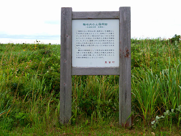 ※稚内市には宗谷の外に稚内駅逓所、宗谷村字峯岡に時前駅逓所(峯岡は今は無人で通行止)、江戸期よりあった抜海駅逓所、夕来海岸の夕来駅逓所、内陸には更喜苫内駅逓所と上声問駅逓所が有ったが遺構や関連する碑などは確認できなかった。
