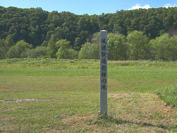 名寄市風連町下多寄地区で通称基線と呼ばれている天塩川近くに開駅され、駅逓所を中心に船着場、店屋、病院など10数戸の集落を形成していたと云う。駅逓取扱人は大谷幸輔で、上川支庁から3頭の馬が配置されていた。かつての天塩川河畔にあった小集落跡は今の河川敷内で風連教育発祥の地と風連駅逓発祥の地の木碑が建っていたが今は石碑に更新されている。ここは小集落ができた頃より今川良策が自宅に子供を集め勉強を教えた教育の始まりの地てもあるという。基線はすぐ堤防に突き当たり、風連カヌーポートの入口から河川敷に入り左折、ラジコン飛行場の入口に碑が有るが、船崎場跡の碑はないようです。◇設置:明治33年08月 ◇廃止:明治41年06月 ◇所在地:名寄市風連町 天塩川河川敷 ◇N44°19’13.5” E142°23’38.7”