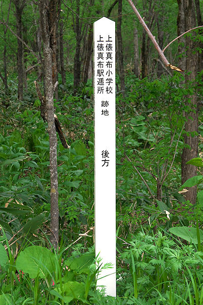 美瑛町唯一の上俵真布駅逓所跡を探していて、土地の方に駅逓跡に親切にも案内して頂いた頃には碑は無かったが最近になって史跡標柱が設置された。現地は藪で駅逓の痕跡は皆無だがそこだけ大きな木はなく開けた感じになっている。昔は尾根を超え忠別から駅逓に買い物に来ていた、志比内より近かったからだろうとの事だった。駅逓廃止後に別の方がニジマス養殖を営んだが続かず廃業、養魚池の跡がわずかに残る。俵真布中央から直線道路を進み橋を越え左側にはいると史跡標柱がある。美瑛町の郷土資料館には駅逓看板が保存されている。 ◇開駅年:昭和13年01月 廃止年:昭和19年09月 ◇取扱人:馬場孫作 ◇俵真布駅逓所跡:美瑛町俵真布 ◇GPS◇N43°36’145”E142°40’35.8”