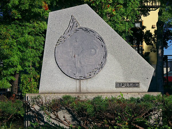 兜谷徳平は富山県西礪波郡(現・富山県小矢部市)出身で明治27年に富山県人の移民団体を率いて現・芦別市福住町に入植したが後に富良野にはいり芦別、富良野の開拓功労者とされる。大正中頃に「富良野用水土功組合」を組織し灌漑用水路、排水溝建設などの泥炭地の開発を行った中心人物で、像は下富良野開発の功績を讃え昭和13年に建立、現在の胸像は昭和25年に原型から作り直されたものという。明治32年に設置された官設下富良野駅逓の取扱人に就任、このときは芦別郵便局長も兼務していた。◇所在地:朝日ヶ丘公園