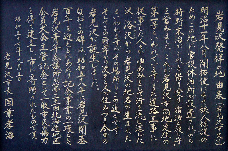 はっきりしないが岩見沢発祥の地公園に関して、明治11年官設駅逓所が開設されたが幌内鉄道の開設で廃駅、狩野末治に払い下げられ明治16年頃より旅人宿と渡し守をしたとされている。高畠利宣の駅逓(第五美瑛舎・明治22年)とは開始年が異なりこちらが岩見沢最初の駅逓のようで、この駅逓と渡し場を中心にして市街地が開けた。また岩見沢の地名起源(数説有り)となった浴沢(ゆあみさわ)もこの近くという。場所が少し複雑だが便利な公園です。 ◇開駅年:明治11年 廃止年:明治15年? ◇初代取扱人:狩野末治? ◇所在地:岩見沢市北本町東1丁目 幾春別川右岸の幾春別川リバーパーク内