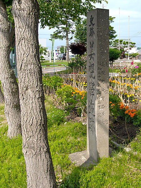 雄武町に旧駅逓跡の痕跡は皆無ですが、上幌内にある開魂の碑に上幌内駅逓所の取扱人だった尾田忠蔵氏の名前があった。明治40年入植者7名の名前と明治44年の入植者と団体名が刻まれ顕彰碑でもあるようだ。その中の一人、小田忠蔵氏は上幌内駅逓所4代目取扱人でもあるので駅逓関連碑とした。駅逓所の開設は明治45年に中幌内で開駅し大正4年に上幌内に移転、昭和18年に廃駅となっている。資料がないので推測の域を出ないが小田忠蔵氏は上幌内駅逓所となってからの取扱人とおもわれる。駅逓の有った場所も不明だが、古い地図には上幌内小学校の近くに駅逓マークがあった。「建立の詞 当地に「上幌内」の名称が冠されたのは明治30年国有未開地処分法に基づき、同36年、調査隊により上幌内一線より九線までの区画が定められた時点である。その後、明治43.4年の両年にわたり新区画が制定され総面積203.45平方キロメートルの現在の行政区画が決定した。---以下省略---昭和45年10月 上幌内開基65年 開校60年 記念事業協賛会建之」以下省略。大正元年には小学校が、戦後すぐに中学校も開校したが昭和30年代後半からの過疎化で昭和54年に中学校、平成2年に小学校が廃校、残っていた4世帯は平成19年に雄武市街地に移転、農作業のため夏期間のみ通い、短期間の居住は有る様子でした。
