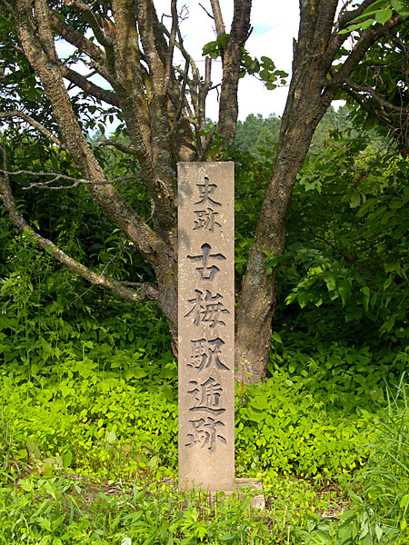 ◇通称名:古梅駅逓 ◇設置年:明治42年4月25日 ◇廃止年:大正6年5月10日 ◇取扱人:初代:山本馬之助 ◇二代:山本盛夫 ◇記念碑:史跡標柱(石碑) ◇建立年:昭和55年11月3日建立 ◇建立者:美幌町教育委員会 ◇所在地:美幌町字古梅 旧道沿い ◇Map:43.712324, 144.191150
