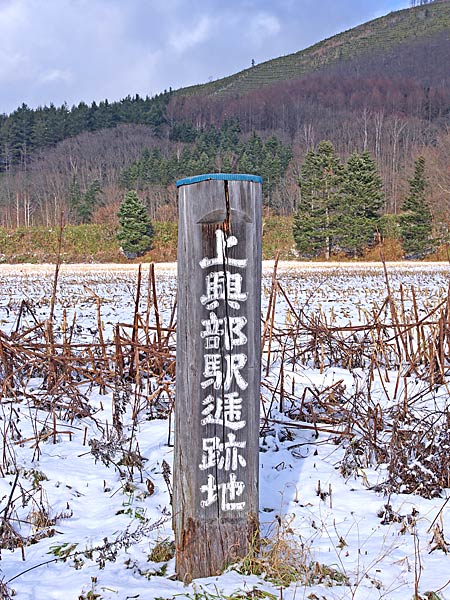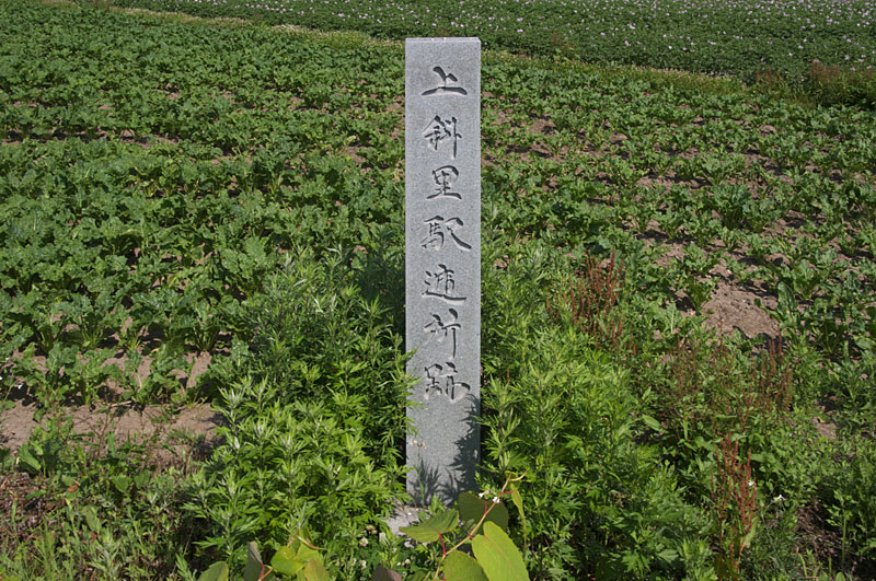 明治42年斜里に川湯間の道路開通にて旧斜里原野7線19号に設置された。石碑は国道工事にて一時撤去されていたが工事終了で再設置された。今の清里町で言うと神居道路で上斜里と神威の境界付近の上斜里側になるが道路際というよりは畑の端という感じで一段低い位置にある。通称神威国道の工事で防雪柵が出来た為に注意してないと見落とすかもしれません。碑文より「上斜里駅逓所は、野川道路が開通した明治42年3月21日上斜里原野7線9号(現在地)に開設された。駅逓所には旅人舎と官馬がそなえられ 旅人の止宿、荷物や郵便物の搬送、道案内などを業務としていた。昭和6年9月の国鉄釧網線の開通によって廃止となったが、当時唯一の交通補助機関兼通信補助機関として本町の発展に大きく寄与した。 建立 昭和61年10日 清里町教育委員会」比較的近いところに清里開基の記念碑があり、野川駅逓管理人であった岩手県人の塚本伊勢太氏が明治30年に神威10線21号に転住入地したのが清里町の和人定住のはじまりとありました。