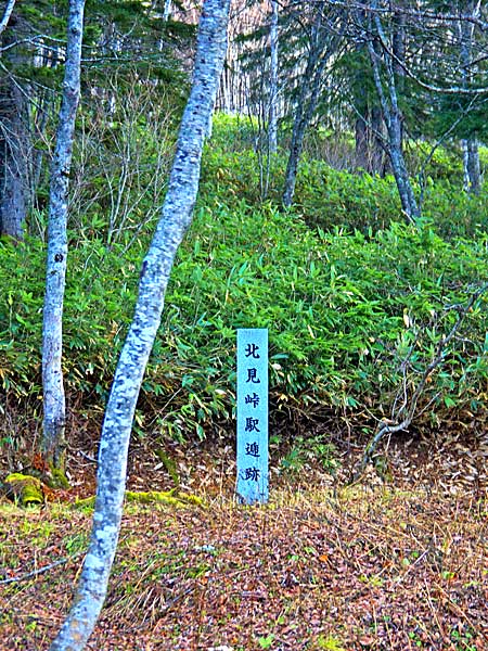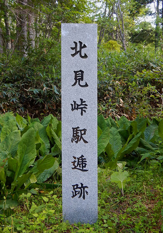 駅逓所跡の碑は上川側だけで北見峠駅逓所と刻まれているが、ヘアピンカーブ沿いで近くには駐車スペースは無い。峠駅逓は石北線の全通で昭和10年に廃駅となっている。石上藤蔵氏に関しては白滝村開拓記念碑で紹介。碑の説明文では明治31年私設駅逓設置とあるが石上氏が赴任するまでは無人舎だったようです。