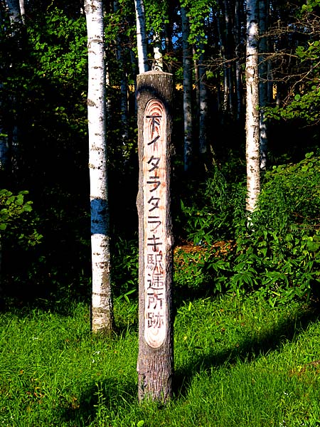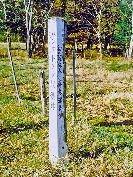 明治36年に藤森弥吾吉によって開設された。上利別市街から国道を陸別方面に進み上利別橋を超えて第三利別橋(地形図での橋名)までの間、三角道路がある少し手前で民家の入口の左側で白樺の中にあるが草が伸びていると国道からはみえない。トマム駅逓所に隣接するが約24kmと距離があり、駅逓馬は七頭を置いていたという。番地まで含めた住宅地図もここまではカバーしていないので探すのは大変かも。標柱の文字は判読が難しそうです。◇開駅年:明治36年04月 廃駅年:大正03年04月 ◇初代取扱人:藤森弥吾吉 ◇現住所:足寄町上利別393番地の3