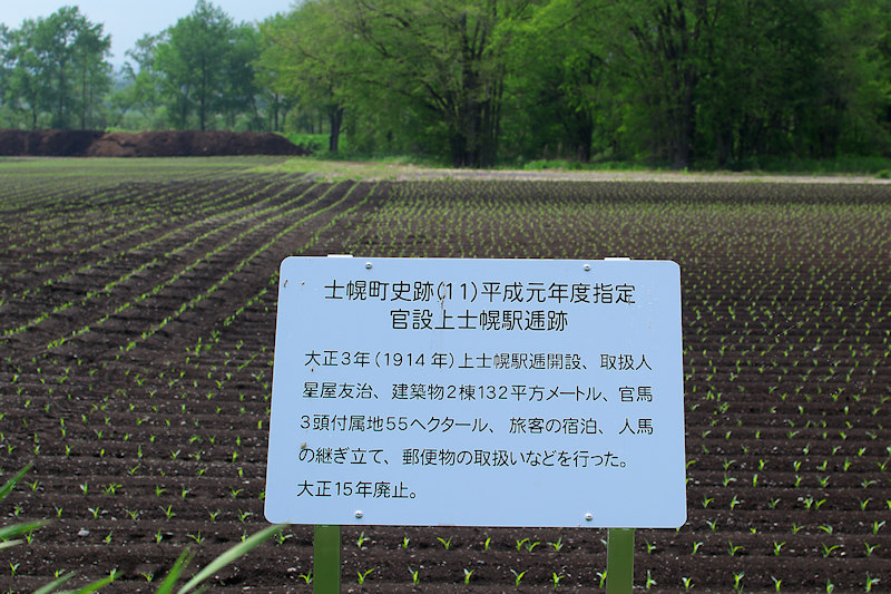西2線35号の上士幌駅逓が最初で足寄(喜登牛)を経て十勝、帯広方面へ抜ける要路に有った。しほろ史跡イラストマップに掲載されたいたかつて設置したという標柱は早くに消失していたが、平成元年に再指定(士幌町の史跡は殆どが再指定されて説明看板が設置された)され、再建されている。説明版は上士幌町との境界に近い西二線道路際にあり高さもそれほどないので目立たない。駅逓舎は説明版の有る位置ではなく、説明版の前方100m程前の畑の中にあったと地元の方に聞いている。 ◇開駅:大正03年12月 ◇廃駅:昭和02年06月 ◇初代取扱人:星屋友治 ◇二代:星屋友重 ◇現住所:士幌町字士幌西1-218 ◇GPS:N43°12’47.0” E143°15’35.0”