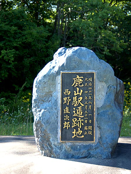 足寄郡陸別村字ポンチャシコツ(字サクシュリクンベツ原野三線)で七年間の経営。トマム駅逓所までの距離は約12km、キトイ(木樋・津別町)駅逓所まで約16kmと陸別と津別をつなぐ最短ルートだった。鹿山駅逓所は網走線(後のふるさと銀河線)の開通に伴って、明治末~大正初期には美幌方面からの雑穀の輸送が行われ、多い日は一日100台の馬車が往来したという。碑は国道51号線沿いでサクシュリクンベツ原野3線の最終人家を過ぎてまもなく、鹿の子峠に向かって左側のパーキングエリアに隣接してあるが、周辺は当時の面影など全くない。また津別方面に駅逓所跡の碑は無いと云う。 ◇開駅年:明治41年07月 ◇廃駅年:大正04年04月 ◇初代取扱人:西野直次郎 ◇現住所:陸別町字サクシュリクンベツ ◇記念碑:石碑二基あり ◇N43°32’08.4” E43°49’01.8”