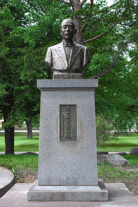 芽室公園の一帯は芽室官設駅逓馬の放牧地で馬に日陰をつくるために多くのカシワを残したという。戦後も芽室の歴史の象徴であるとしカシワの伐採を認めなかった今でも樹齢数百のカシワが残されている。公園内には芽室官設駅逓所の取扱人であった遠山房吉氏の銅像が建立されている。駅逓は明治33年から明治41年までの営業と鉄道開通と共に廃駅、内陸にしては比較的短命でした。芽室町には大正から昭和にかけて上伏古駅逓所、旭山駅逓所も開設されているが記念碑などは無いようです。国道38号線沿いに広がる20haの広大な芽室公園は道内有数の規模を誇る花菖蒲園と芽室町の天然記念物に指定されている樹齢数百年というカシワの大木が残されている。柏林にある樹齢約400年クラスの巨木は根の踏みつけが原因か?枯れていた。 ◇開駅:明治33年07月 ◇廃駅年:明治41年02月 ◇初代取扱人;遠山房吉 ◇種類別:室町天然記念物 ◇指定日:S48.11.1 ◇所在地:河西郡芽室町本通9丁目1