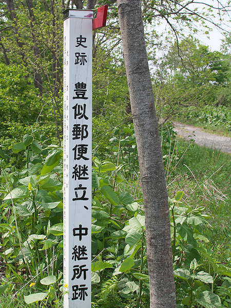 駅逓所が郵便物を取り扱う例は初期には多かったようですが、この場合はその逆で例としては珍しい。そんなことで掲載しておきます。標柱の説明文より『明治33(1900)年広尾と帯広間の郵便継立、中継所として郵便物の中継の他、宿泊の便もかね、笹森長七郎取り扱いで始まった市街地十数戸とともに豊似発祥の地でもある。中継所は大正10年2月集配郵便局として豊似本通り23番地に開局された。管轄区域は野塚川以北、紋別川までてあった。平成27年8月再建 広尾歴史研究会・広尾町教育委員会』標柱は国道沿いで豊似市街地近くで豊似橋より豊似川寄りの道を上流側に入ると左側にある。◇所在地:広尾町豊似