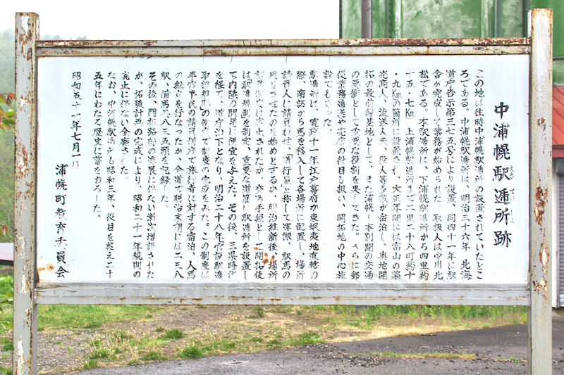 留真で農牧のかたわら河西支庁のすすめで中川北松が引き受けた駅逓所は官設の2階建で下浦幌と上浦幌駅逓所の中間に位置していた。中川北松の入居したのは明治38年というので空白の期間があったようです。また明治36年開設とされているが実際に営業を開始したのは明治41年からと云う。説明版は道道56号線と947号線の分岐点近くの民家前、道路を挟んだ高い所に中川北松翁の顕彰碑(地形図にマーク)があります。道道947号線の終点に2011年に「うらほろ留真温泉」がリニューアルオープンしたが、古くから集落の住民が農閑期に五右衛門風呂を据え加熱して利用していたというが、中浦幌駅逓所の取扱人が大正4年に3階建ての留真温泉館を建て駅逓の宿泊客にも利用させていたというが、温泉経営は短期間でした。説明版の写真はギャラリーに。 ◇開駅年:明治36年05月 ◇廃駅年:昭和03年06月 ◇初代取扱人:中川北松 ◇所在地:浦幌町留真 ◇N42°55’09.7” E143°39’38.7”