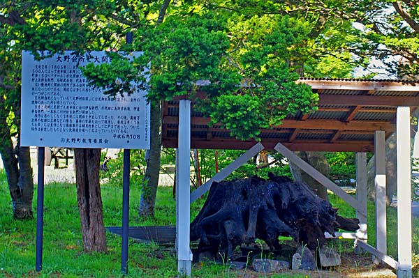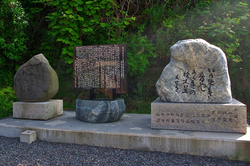碑文 『この地に官設の駅逓所が設置されたのは、明治42年(1901)から、昭和17年(1942年)までの33年間であった。取扱い人は、富樫茂助、富樫正吉であり、地域の繁栄に尽力した。歴史的遺産として、その功績を称え後世に伝えるものである。平成二十四年十月十日建立 富樫家』