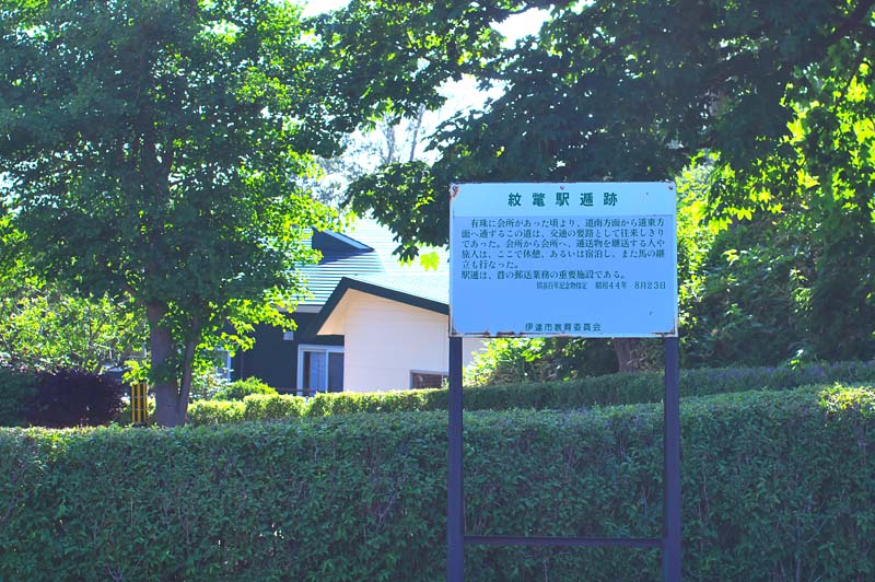 道道779号線沿いにあり松の木が目印、伊達市が紹介看板を設置ししています。 ◇紹介文より『有珠に会所があった頃より、道南方面から道東方面へ通ずるこの道は、交通の要路として往来しきりであった。会所から会所へ、逓送物を継送する人や旅人は、ここで休憩、あるいは宿泊し、また馬の継立も行なった。駅逓は、昔の郵送業務の重要施設である。開基百年記念物指定 昭和44年8月23日』紋鼈駅逓の歴史は古いようですが、官設の駅逓としては明治16年の開駅となっているようです。初代取扱人は松倉行政、2代目は松倉健一郎でした。廃止年は分かりませんが鉄道開通の頃と思います。◇所在地:伊達市北稀府町 ◇N42°26’35.41” E140°53’18.61”