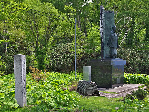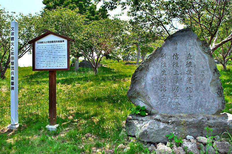 浜厚真への本格的な和人の移住は明治3年の新潟県人、青木与八がはじまりという。青木与八は浜厚真の開拓に着手するとともに、明治6年に駅逓を開設(北海道宿駅制の研究では明治33年に浜厚真駅逓開駅)し渡船場も営んでいたというが、駅逓に関しては厚真町史にあるだけで詳細は不明、私設の駅逓と思われる。高さ1.27mの記念碑は、浜厚真自治会が昭和3年に浜厚真開拓の祖として、その功績を称え建立したもの。◇所在地:厚真町字浜厚真 浜厚真神社境内